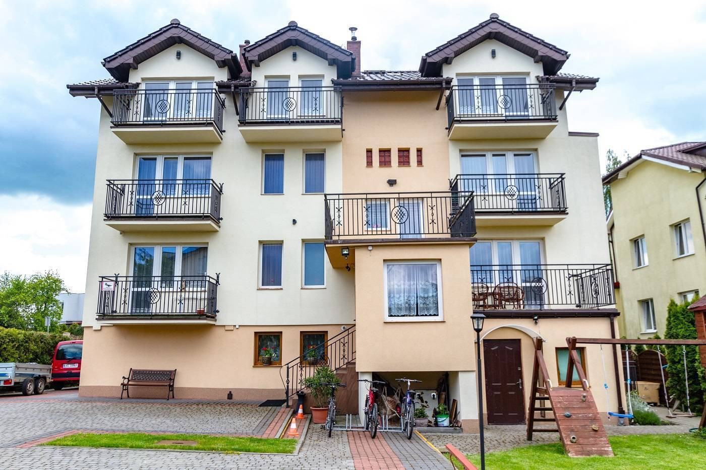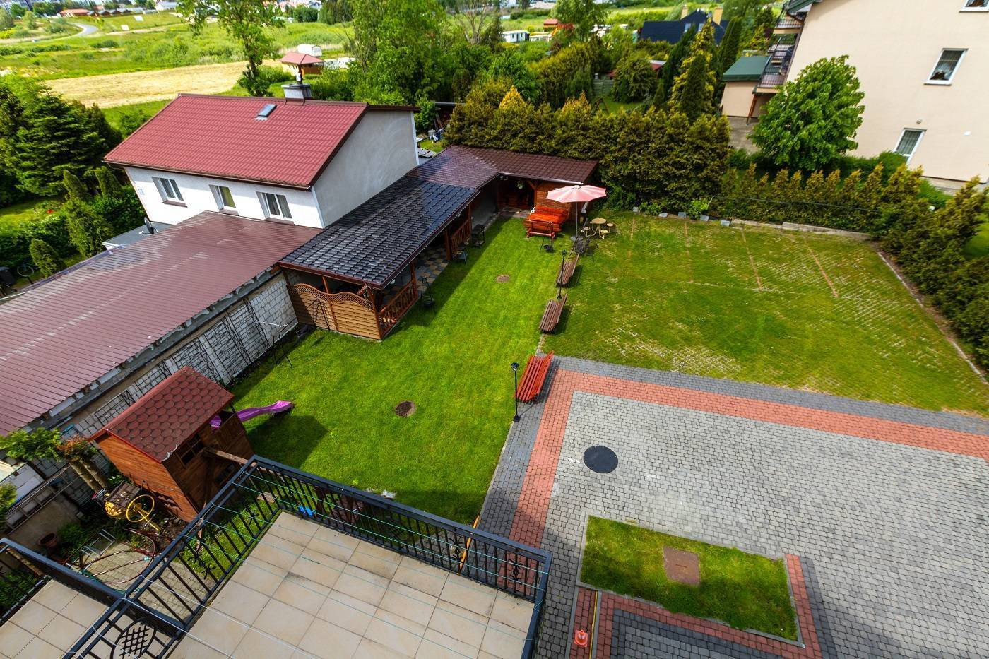 Obiekt posiada łącznie 27 pokoje, ogrodzone podwórko z parkingiem i budynkami gospodarczymi.