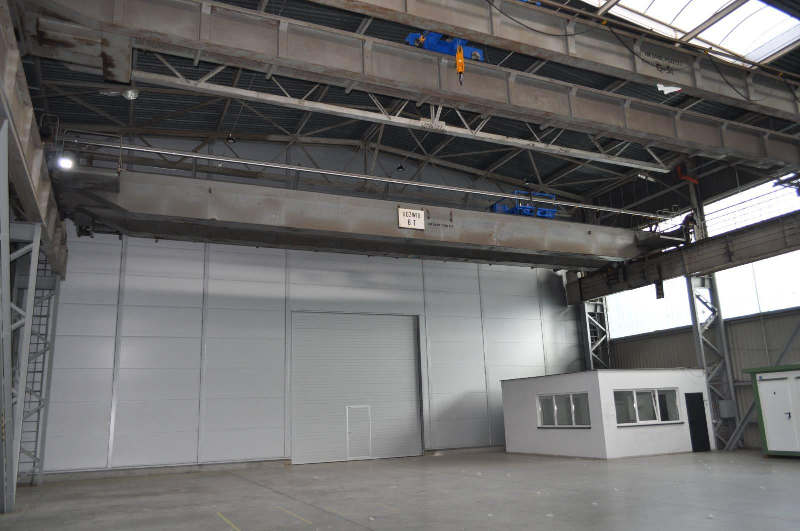 Hala jednonawowa: wymiana świetlików dachowych, wymiana oświetlenia, nowa bezpyłowa posadzka, wymiana bram, czyszczenie i malowanie konstrukcji hali , gruntowna modernizacja dwóch suwnic (Q=8t i Q=5t), doprowadzenie wody oraz kanalizacji, nowa instalacja elektryczna wraz z rozdzielniami.