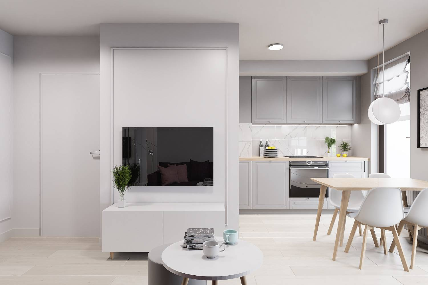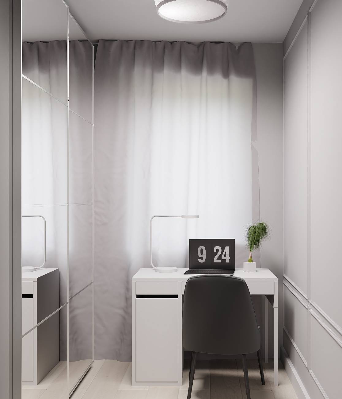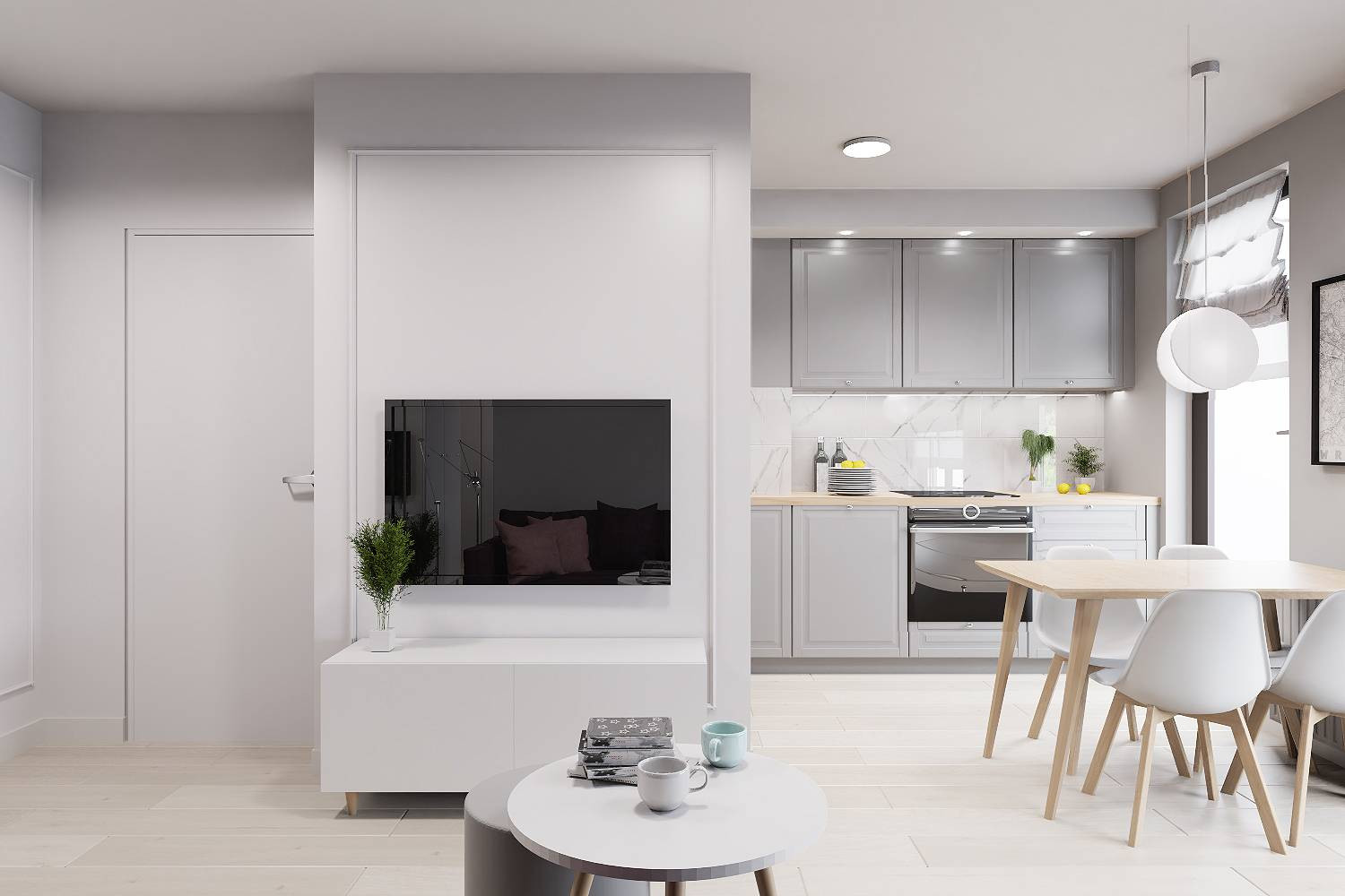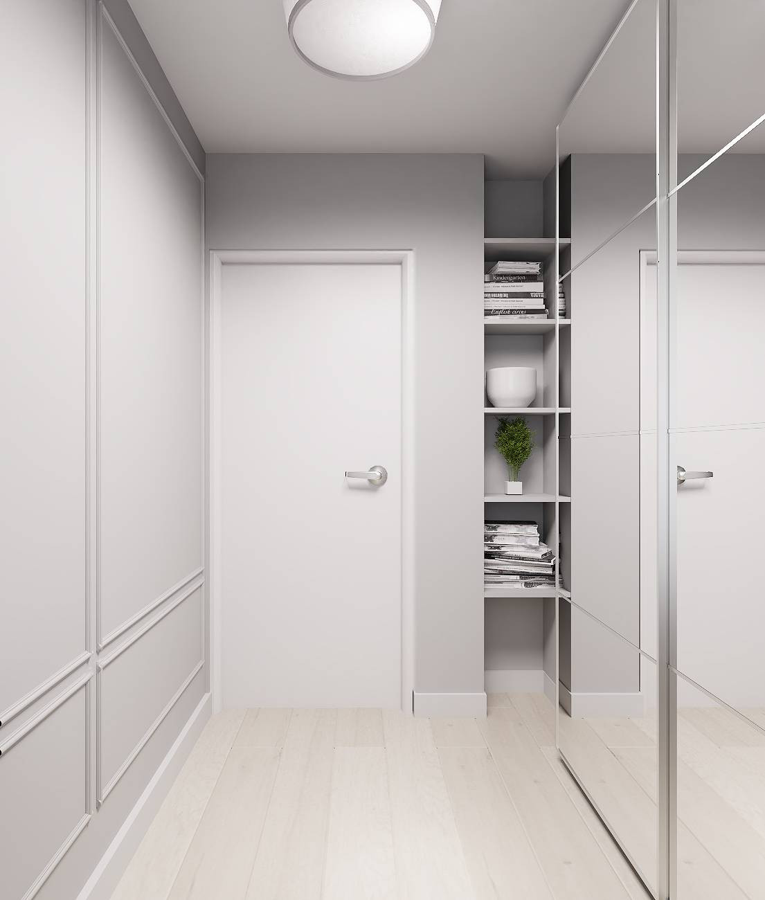 Zdjęcia przedstawiają wizualizację projektu wykończenia mieszkania.