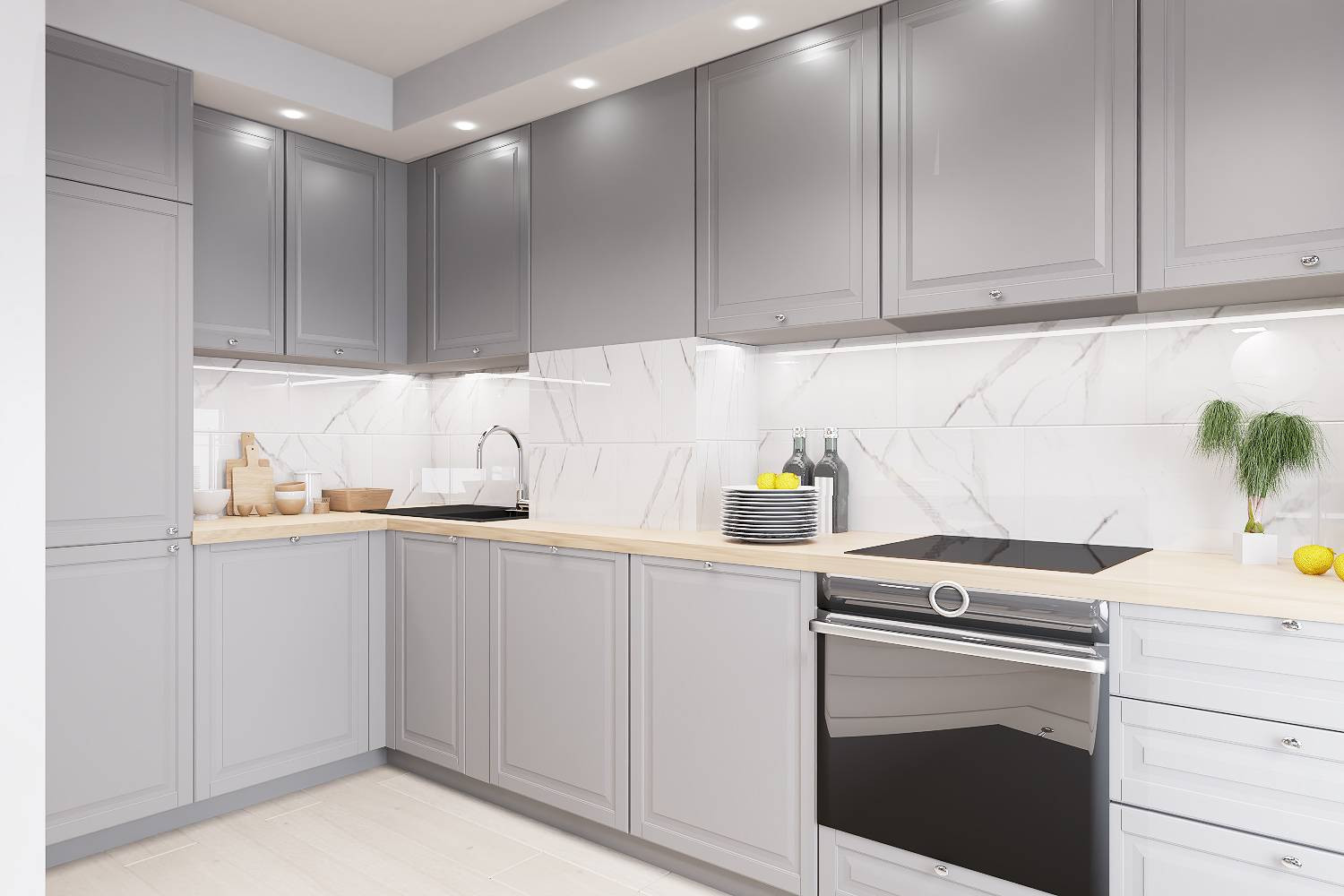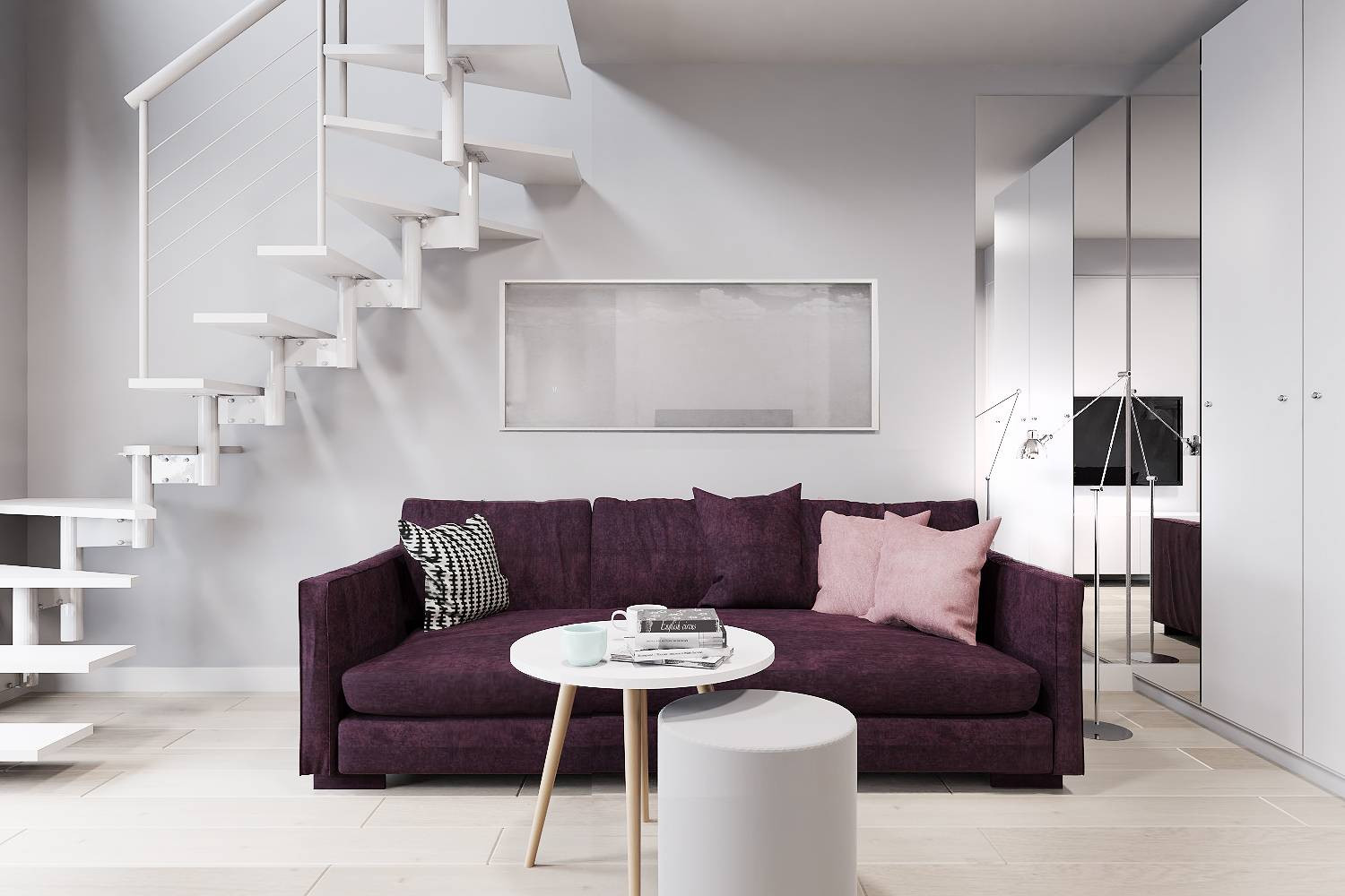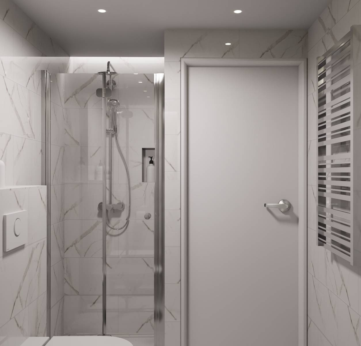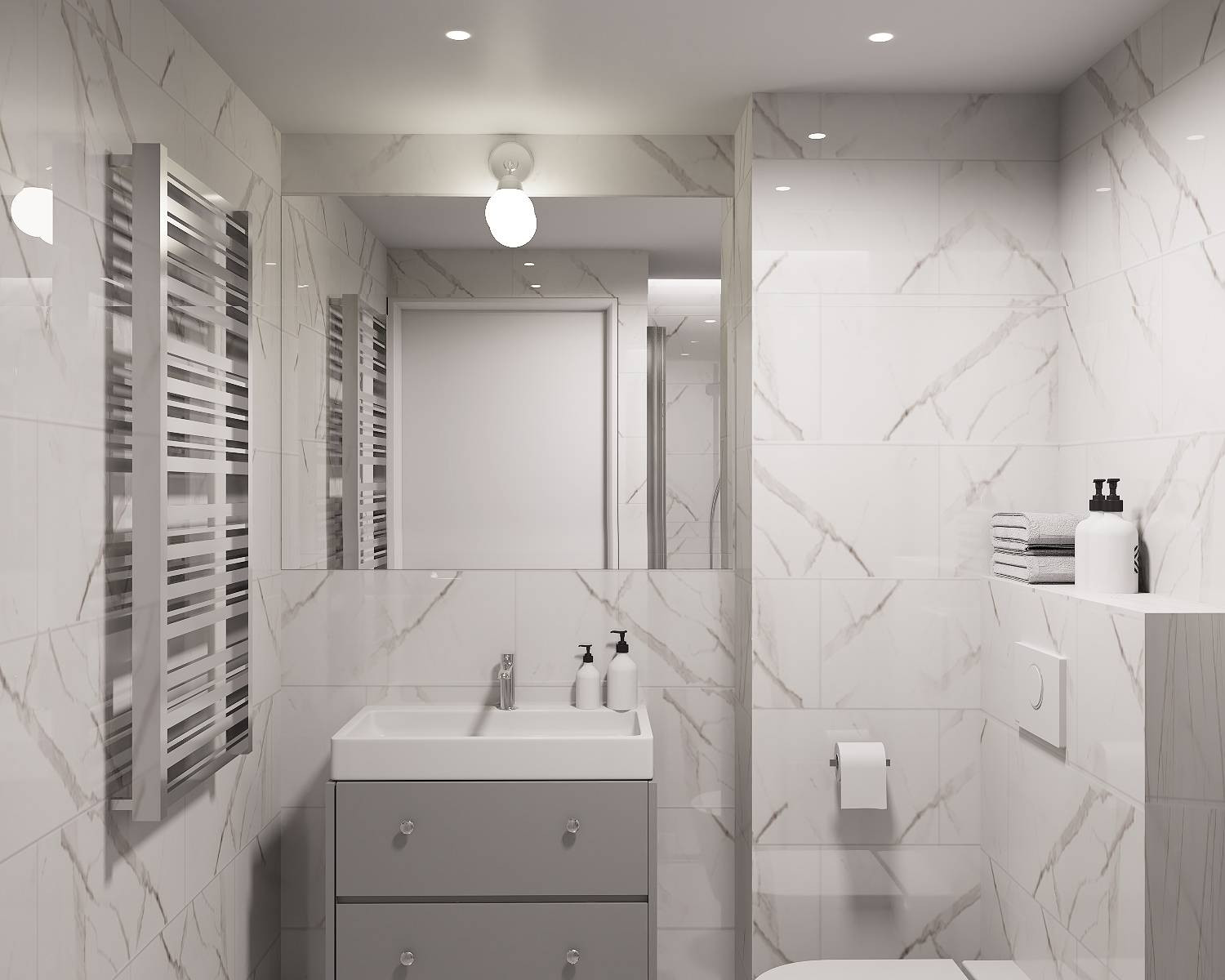 Zdjęcia przedstawiają wizualizację projektu wykończenia mieszkania.