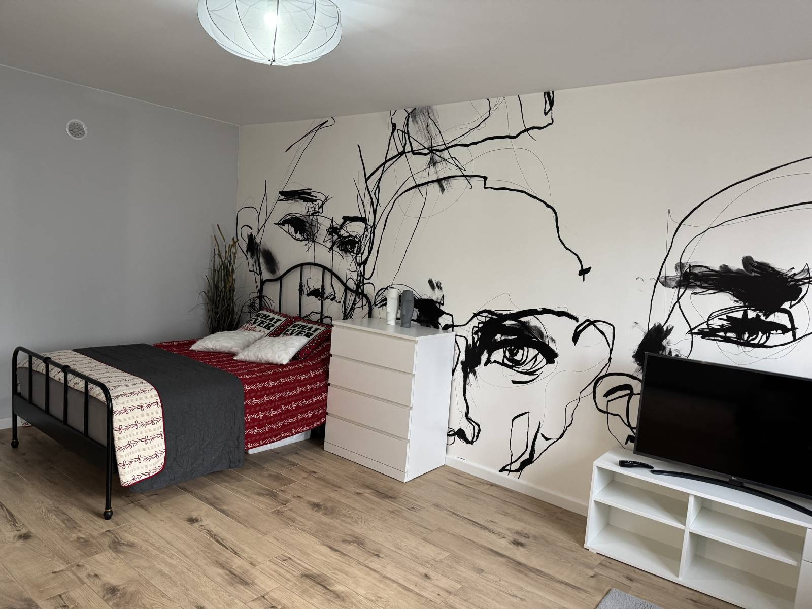 • 1 duży pokój w pełni umeblowany obejmujący strefę dzienną oraz sypialnianą. Pomieszczenie można łatwo rozdzielić trwałą ścianką np. typu loftowego uzyskując odrębne pomieszczenia wg. własnego uznania.