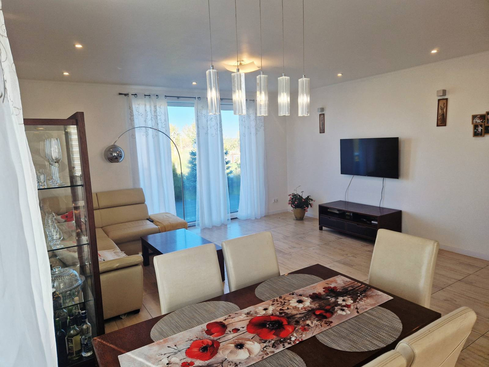 Sprzedam dom jednorodzinny położony w malowniczym miasteczku Pasym na mazurach. Dom składa się z otwartej kuchni połączonej z jadalnią oraz przestronnego salonu, z którego wychodzi się na taras i dalej do ogrodu. Dom posiada trzy sypialnie, łazienkę, korytarz z garderobą na wymiar i wiatrołap z dużą szafą na wymiar oraz kotłownię. Dom ogrzewa kominek firmy IWONA PELLETS - jest to nowoczesny kominek na pellet, który pełni funkcję zarówno kominka jak i pieca do którego podłączone jest ogrzewanie podłogowe. Kominek rozpala się automatyczne. Możliwe jest zdalnie sterowanie funkcjami kominka. W kotłowni usytuowany jest zasobnik na pellet oraz zasobnik na wodę. Na działce znajduje się drewniana wiata. Działka jest w pełni zagospodarowana. Znajdują się na niej drzewa I krzewy owocowe jak również rośliny ozdobne. Dom usytuowany jest na spokojnym osiedlu domów jednorodzinnych. Można tu korzystać w pełni z atutów otaczającej przyrody lasów i jezior ale też w ciągu 30 minut znaleźć się w centrum Olsztyna. Dom budowany solidnie i z pasią. Serdecznie polecam.