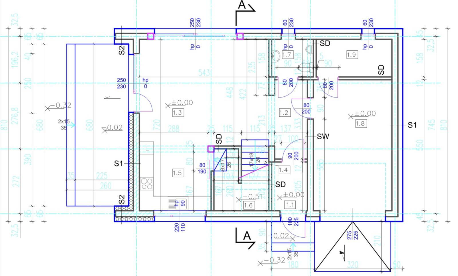 -garaż w bryle budynku 18,1 m2