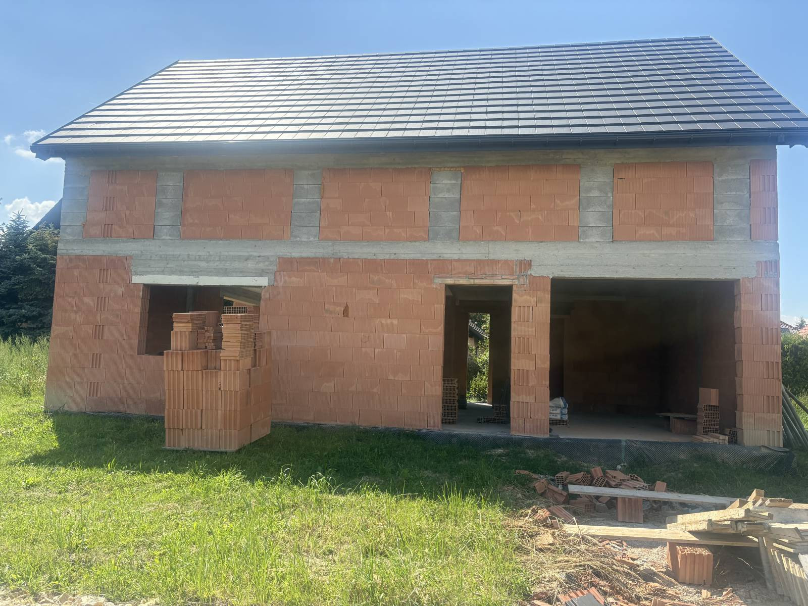 Budynek wykonany został z pustaka ceramicznego Porotherm DryFix, a dach pokryto trwałą dachówką ceramiczną.