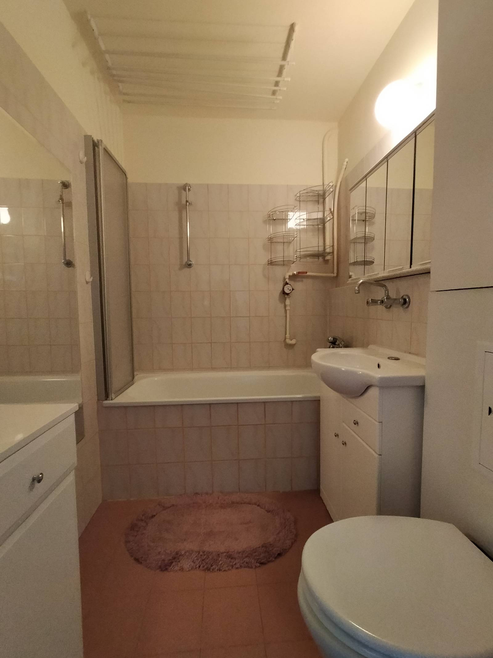 - łazienka - wanna , parawan wannowy , suszarka sufitowa, ubikacja, meble w zabudowie