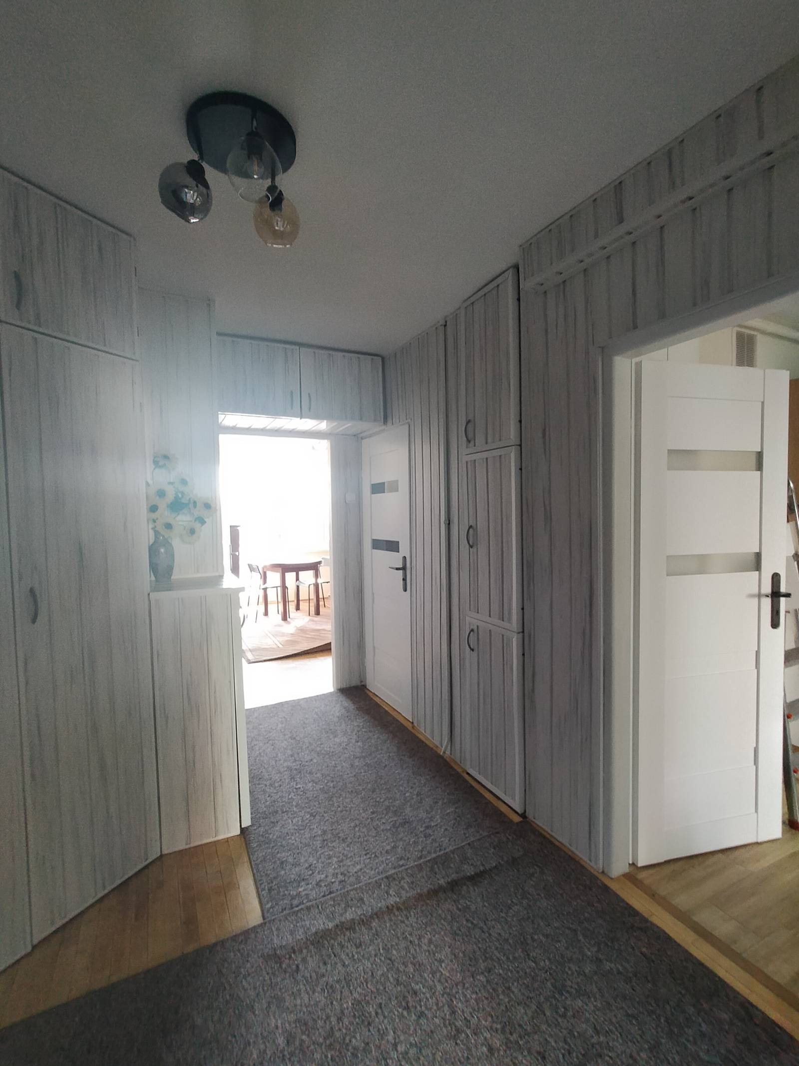 - w przedpokoju duża szafa w zabudowie (garderoba), wieszak, lustro