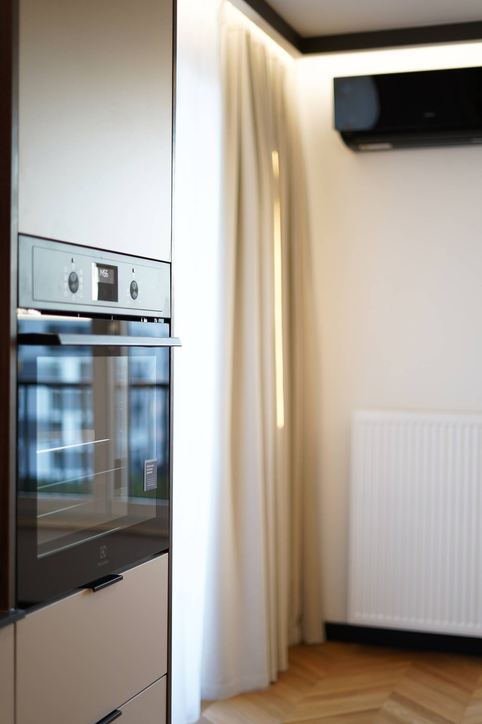 Projekt mieszkania powstał przy założeniu połączenia elegancji, ergonomii i maksymalnego wykorzystania przestrzeni. Dzięki optymalnemu układowi wnętrza i ekspozycji na 3 strony świata oferuje nie tylko doskonałe warunki do życia, ale także wysoką wartość użytkową i estetyczną. Nowoczesną elegancję i subtelny luksus podkreślają: