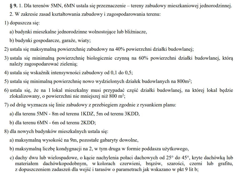 Uchwalony mpzp - przeznaczenie: zabudowa mieszkaniowa (szczegóły na zdjęciu)
