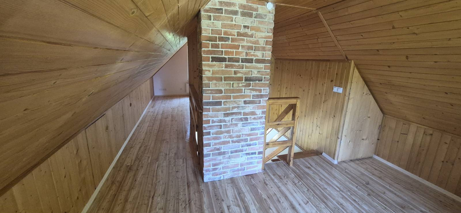 Został wybudowany w roku 2009. Na parterze znajdują się: wiatrołap, łazienka, salonokuchnia i pokój zamknięty. Z wiatrołapu jest wejście do małej piwniczki. Na poddaszu- dwa pokoje otwarte. Na zewnątrz znajduje się kotłownia z kotłem peletowym. Dom wyposażony jest w kamery, alarm, internet. Jest przygotowane miejsce pod indukcję.