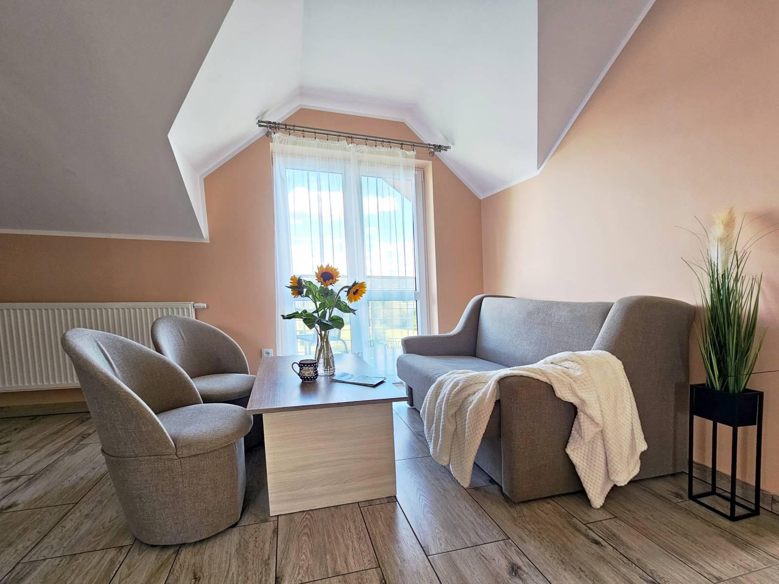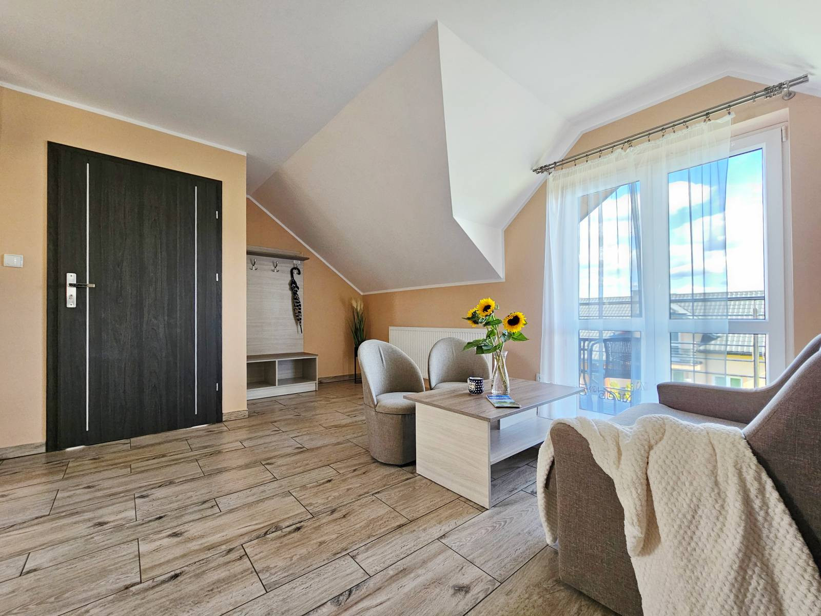 Funkcjonalny salon z wyjściem na balkon/taras