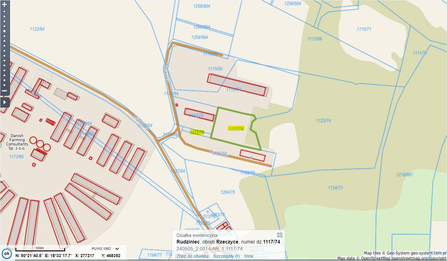 Rzeczyce (gmina Rudziniec) - działka przemysłowa wraz z drogą dojazdową o łącznej powierzchni 0,6260 ha. Przeznaczenie nieruchomości w miejscowym planie zagospodarowania przestrzennego: SK - tereny produkcyjno - usługowe i inżynierii. Media w granicy.